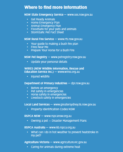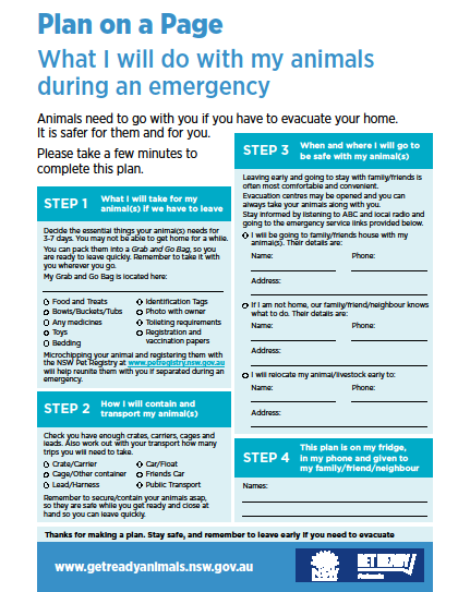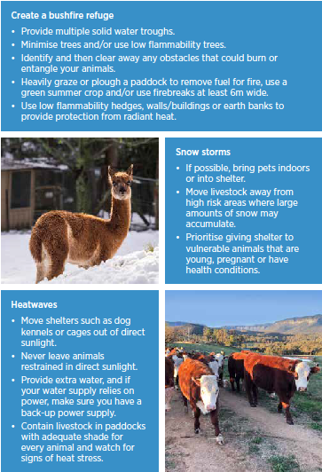 your animals, in the event of severe storms and floods, bush fires, heat waves and other