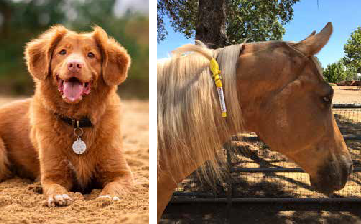 Horses can have emergency contact information attached to their mane through a tag e.g.