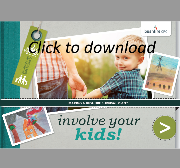 The Bushfire CRC has produced an e-book for parents on how to talk to children about bushfire preparation and safety. The book is based on the PhD research of Briony Towers from RMIT University, which has been presented in many research and industry forums in recent years. The book is designed as an interactive PDF which can be read on a computer or any tablet device. It can also be printed.